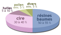 La propolis est fabriquée par les abeilles, à partir de résines recueillies sur certains bourgeons (bouleau, peuplier, saule, frêne..). Elles " butinent" ces bourgeons, entreposent la résine dans les petites dépressions de leurs pattes arrières (comme pour le pollen) et reviennent à la ruche.
