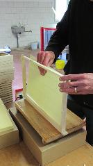 Les abeilles vont « étirer le cadre » c’est-à-dire faire une boîte de forme hexagonale à partir de l’empreinte. L’armoire est propre et prête.